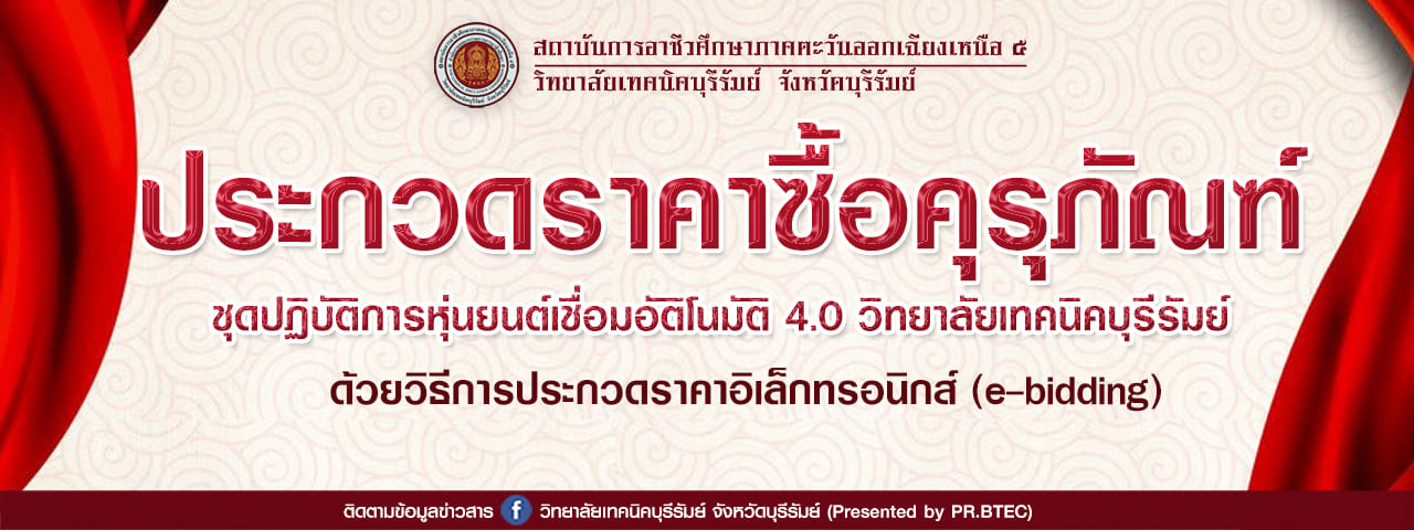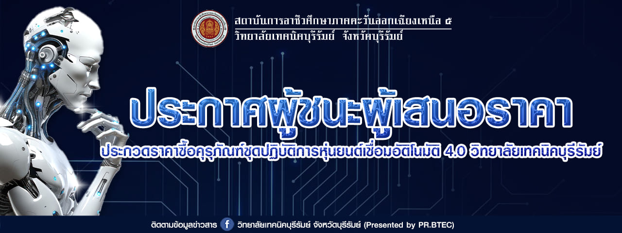 ประกาศผู้ชนะผู้เสนอราคา ประกวดราคาซื้อคุรุภัณฑ์ชุดปฏิบัติการหุ่นยนต์เชื่อมอัติโนมัติ 4.0 วิทยาลัยเทคนิคบุรีรัมย์...