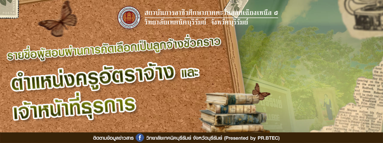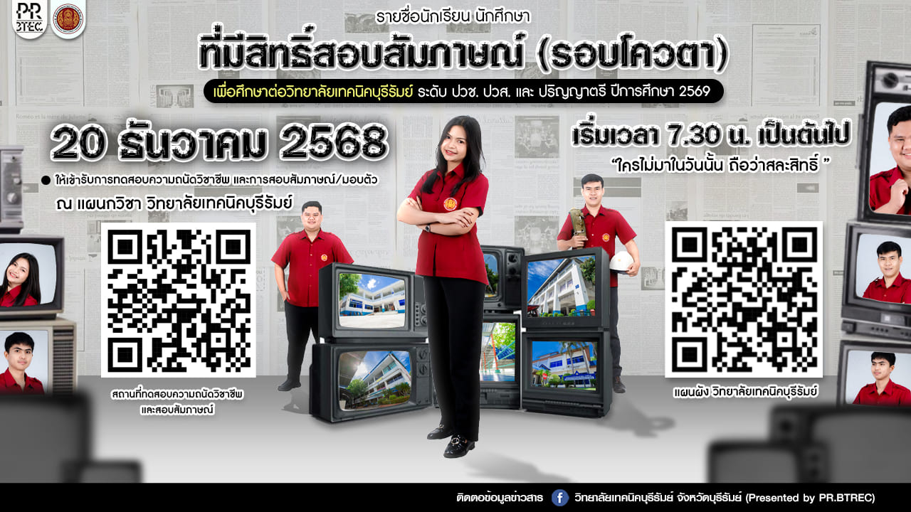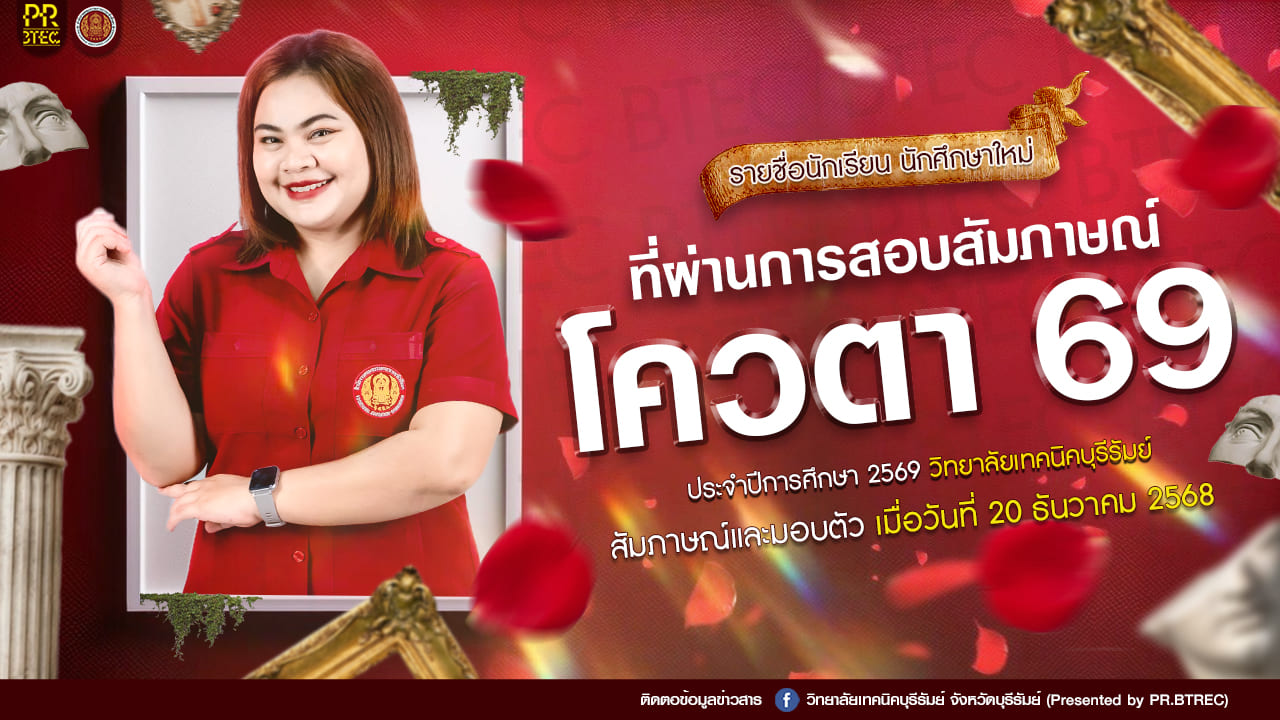 ประกาศรายชื่อที่ผ่านการสอบสัมภาษณ์ เข้าศึกษาต่อวิทยาลัยเทคนิคบุรีรัมย์ รอบโควตา ประจำปีการศึกษา 2569...
