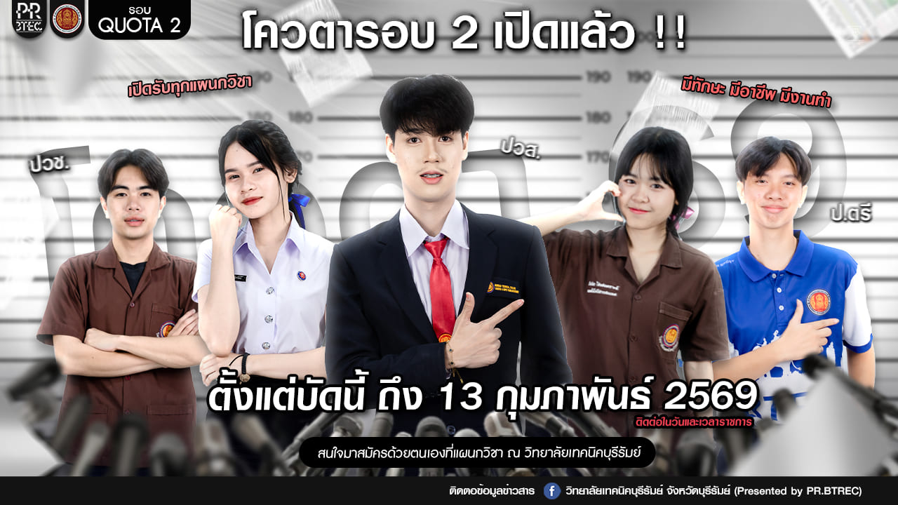 เปิดรับสมัคร นักเรียน นักศึกษาใหม่ (โควตารอบที่ 2) ประจำปีการศึกษา 2569...