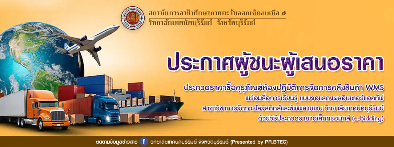 ประกาศผู้ชนะผู้เสนอราคา ประกวดราคาซื้อคุรุภัณฑ์ห้องปฏิบัติการจัดการคลังสินค้า WMS พร้อมสื่อการเรียนรู้ แบบจอแสดงผลอินเตอร์แอคทีฟ สาขาวิชาการจัดการโลจิสติกส์และซัพพลายเซน...