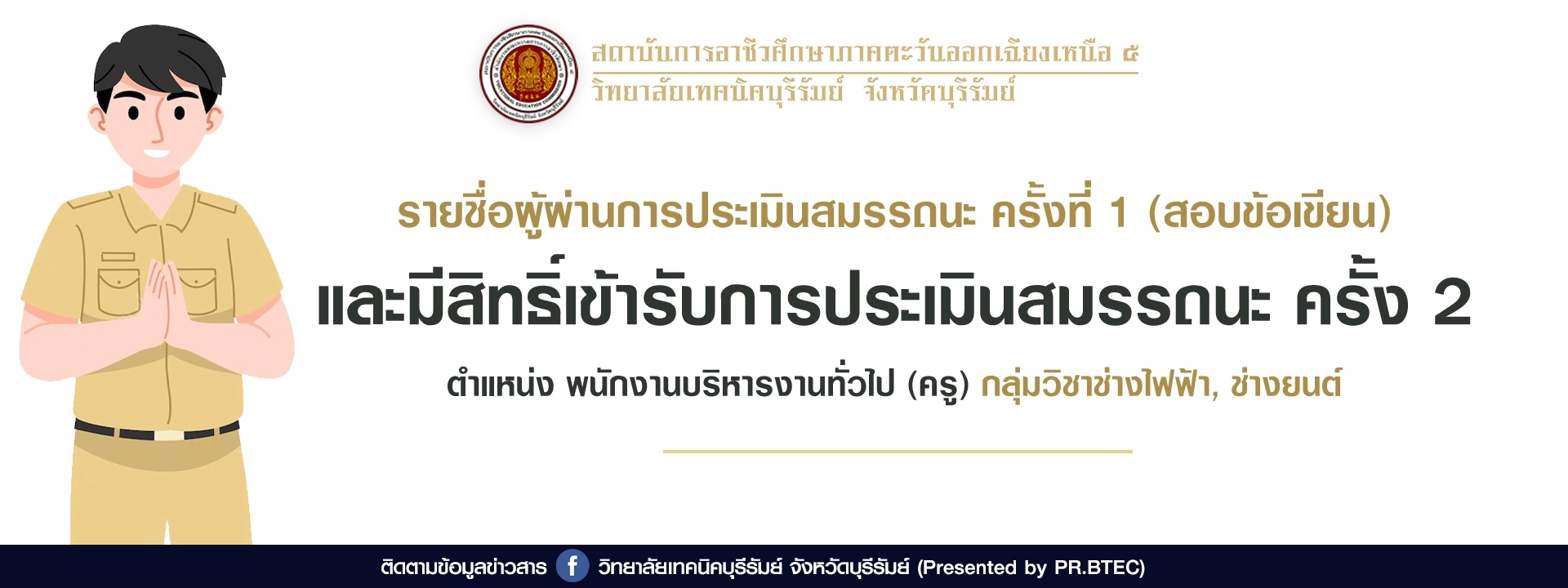 รายชื่อผู้ผ่านการประเมินสมรรถนะ ตำแหน่ง พนักงานบริหารงานทั่วไป (ครู) กลุ่มวิชาช่างไฟฟ้า , ช่างยนต์...