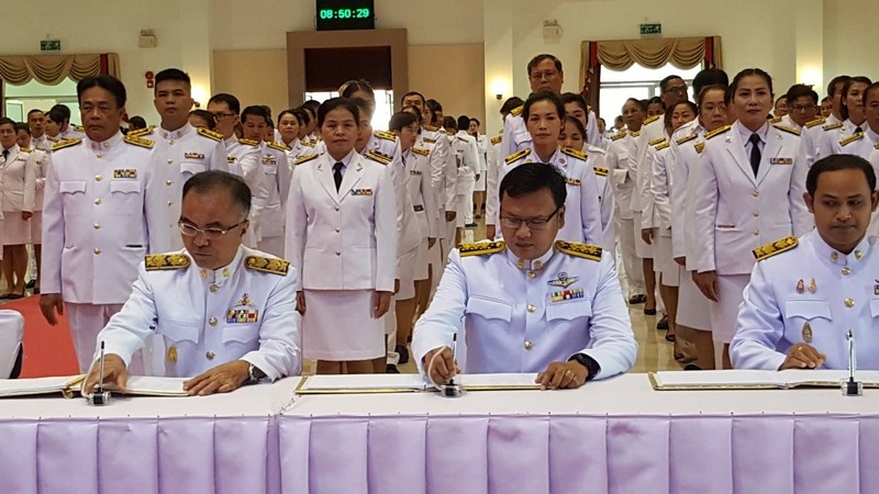 พิธีถวายสัตย์ปฏิญาณเป็นข้าราชการที่ดีและพลังของแผ่นดิน ณ หอประชุมจังหวัดบุรีรัมย์ ศาลากลางจังหวัดบุรีรัมย์