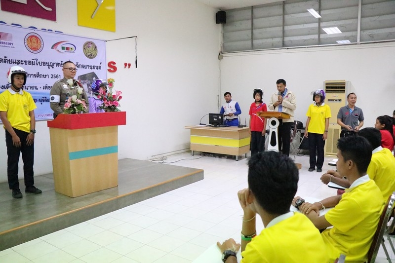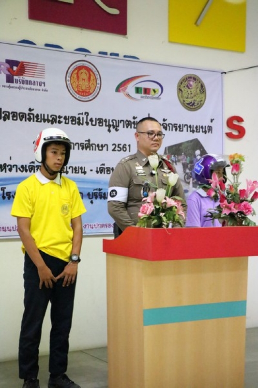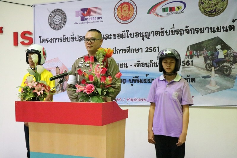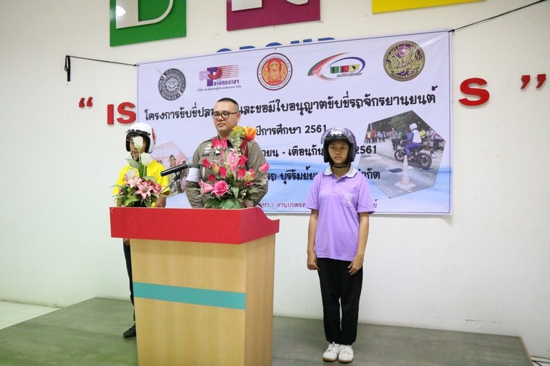 พิธีเปิดโครงการขับขี่ปลอดภัยและขอมีใบอนุญาตขับขี่รถจักรยานยนต์ ประจำปีการศึกษา 2561
