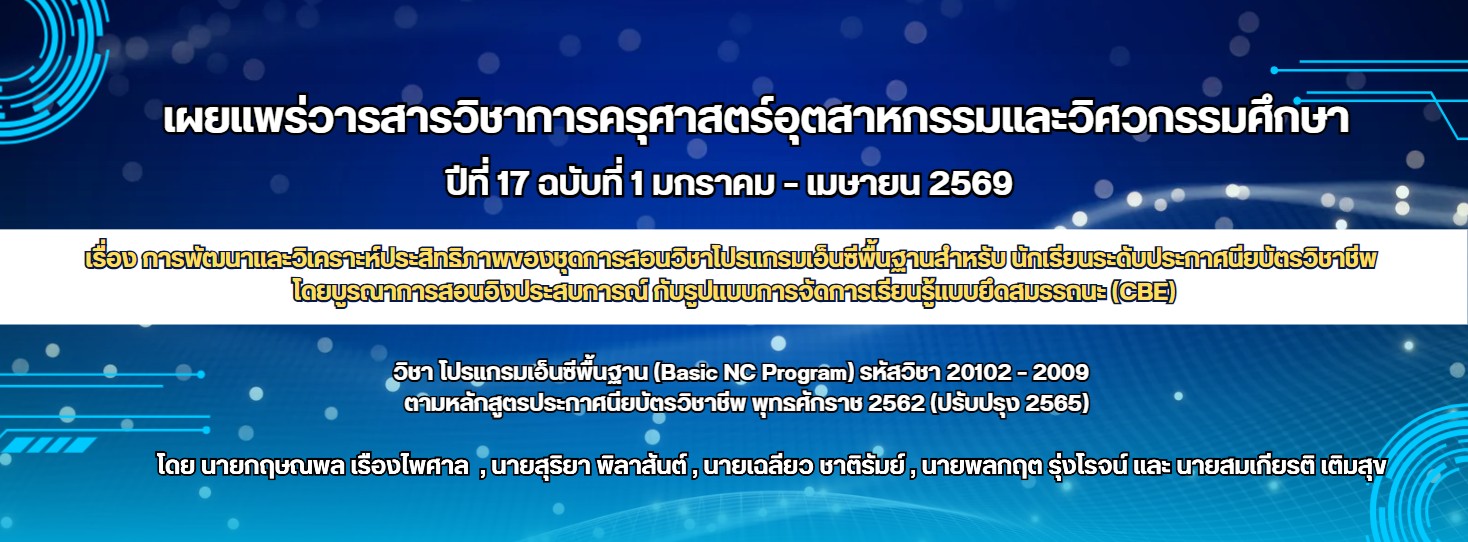 เผยแพร่วารสารวิชาการครุศาสตร์อุตสาหกรรมและวิศวกรรมศึกษา ปีที่ 17 ฉบับที่ 1 มกราคม - เมษายน 2569