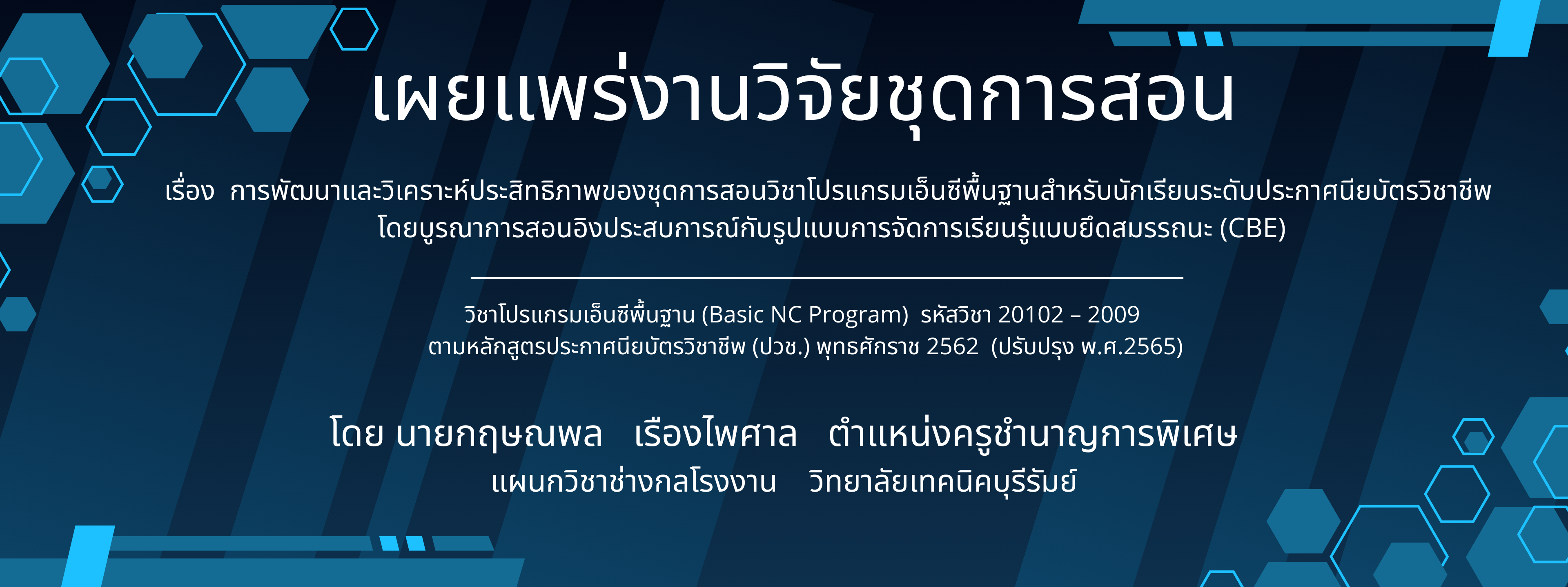 เผยแพร่งานวิจัยชุดการสอน วิชาโปรแกรมเอ็นซีพื้นฐาน (Basic NC Program) รหัสวิชา 20102-2009...